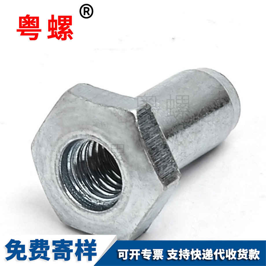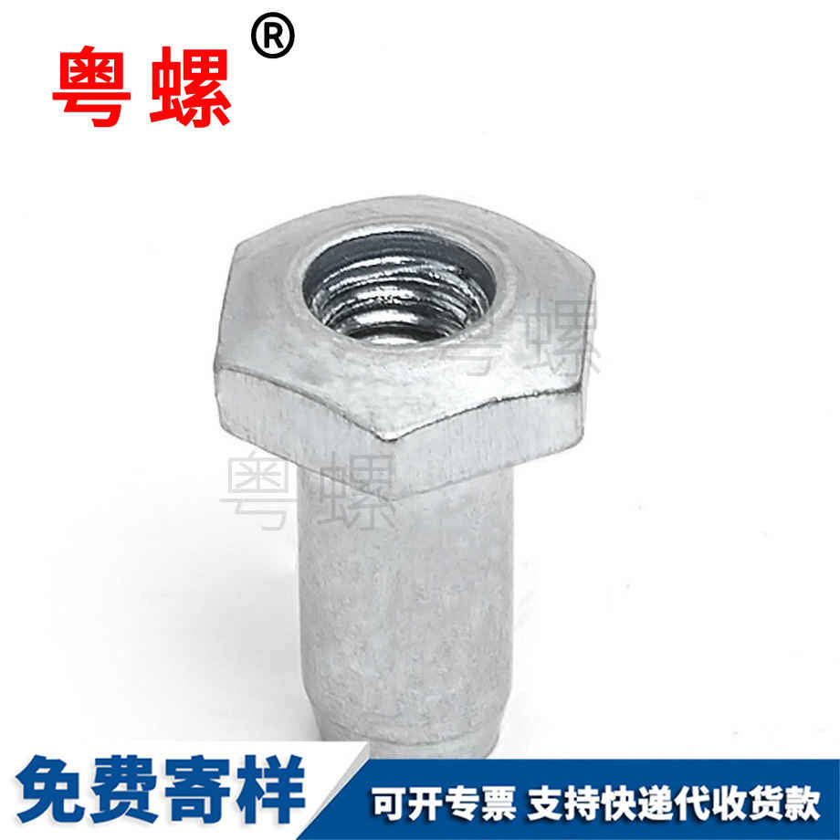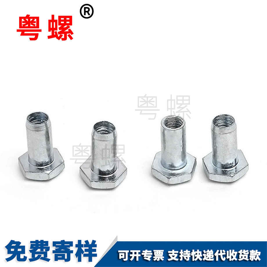 傳統的單面鉚接工藝主要采用拉鉚螺母連接及抽芯鉚釘連接兩種方式。拉鉚螺母效率低,如果采用空心螺母則剛度不足,導致連接強度較低;另外,拉鉚螺母的抗扭轉性能低,如果為得到較好的抗扭轉性能而采用拉鉚螺母做成六邊形嵌入,由于鈑金開孔的形狀也需要做出對應的六邊形,加工不方便。