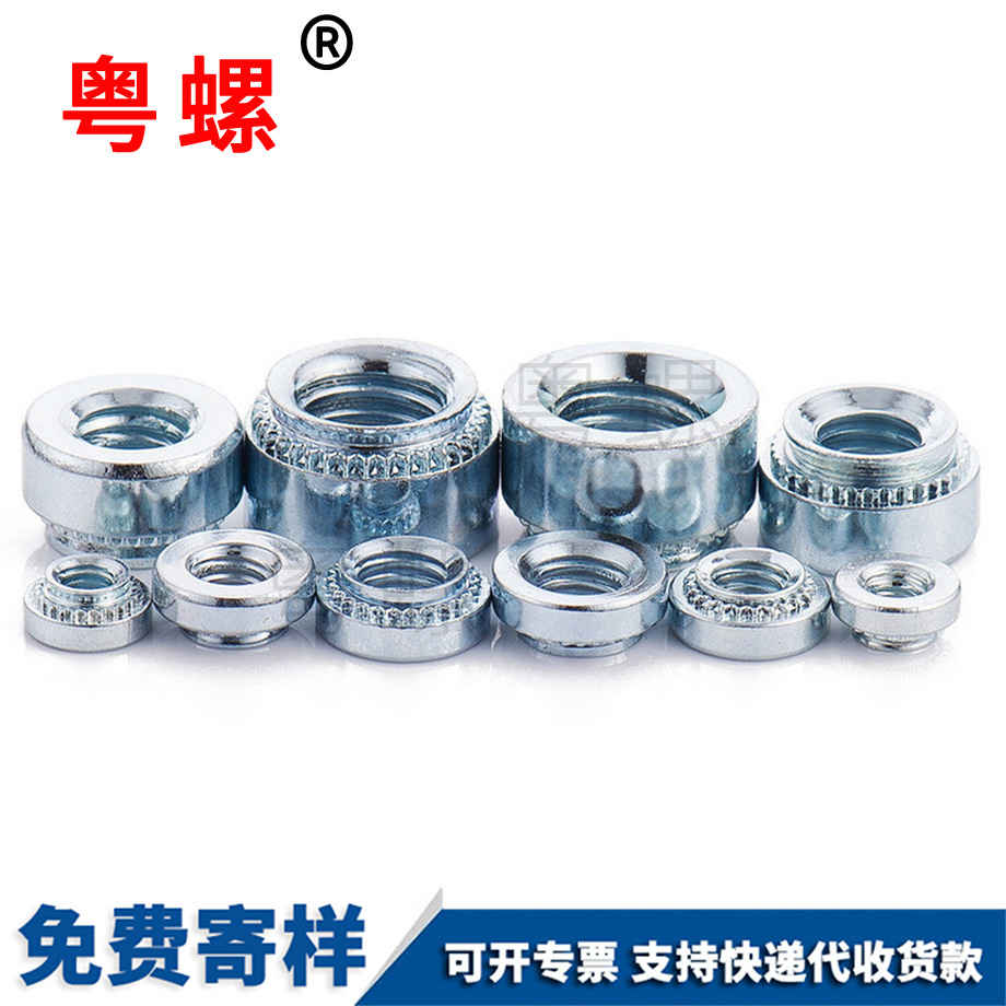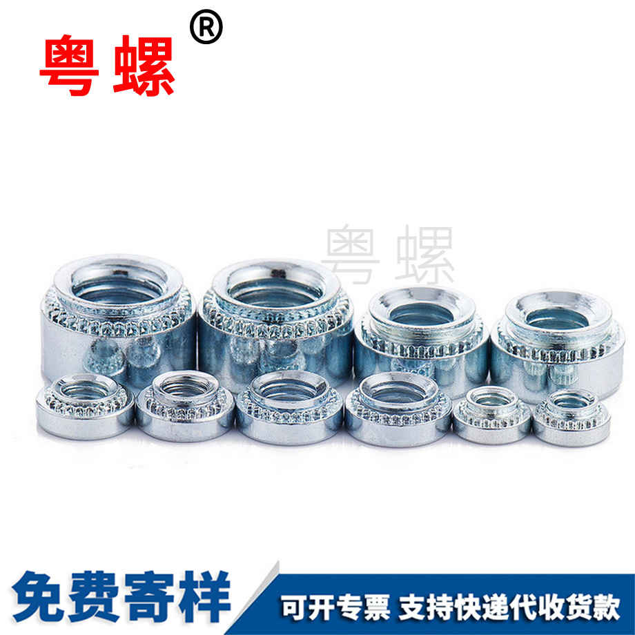 鉚接是一種用于結合二件金屬件的工法,其原理為擠壓至少其中一件金屬件使其產生形變,形變處與另一金屬件相互嵌合而將二金屬件固定結合。因此鉚接技術常用于將如螺母或是鉚釘等鉚件固定至金屬板上。