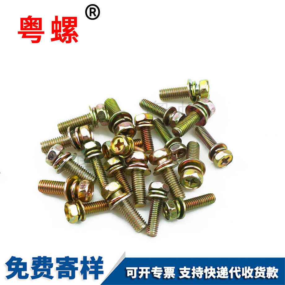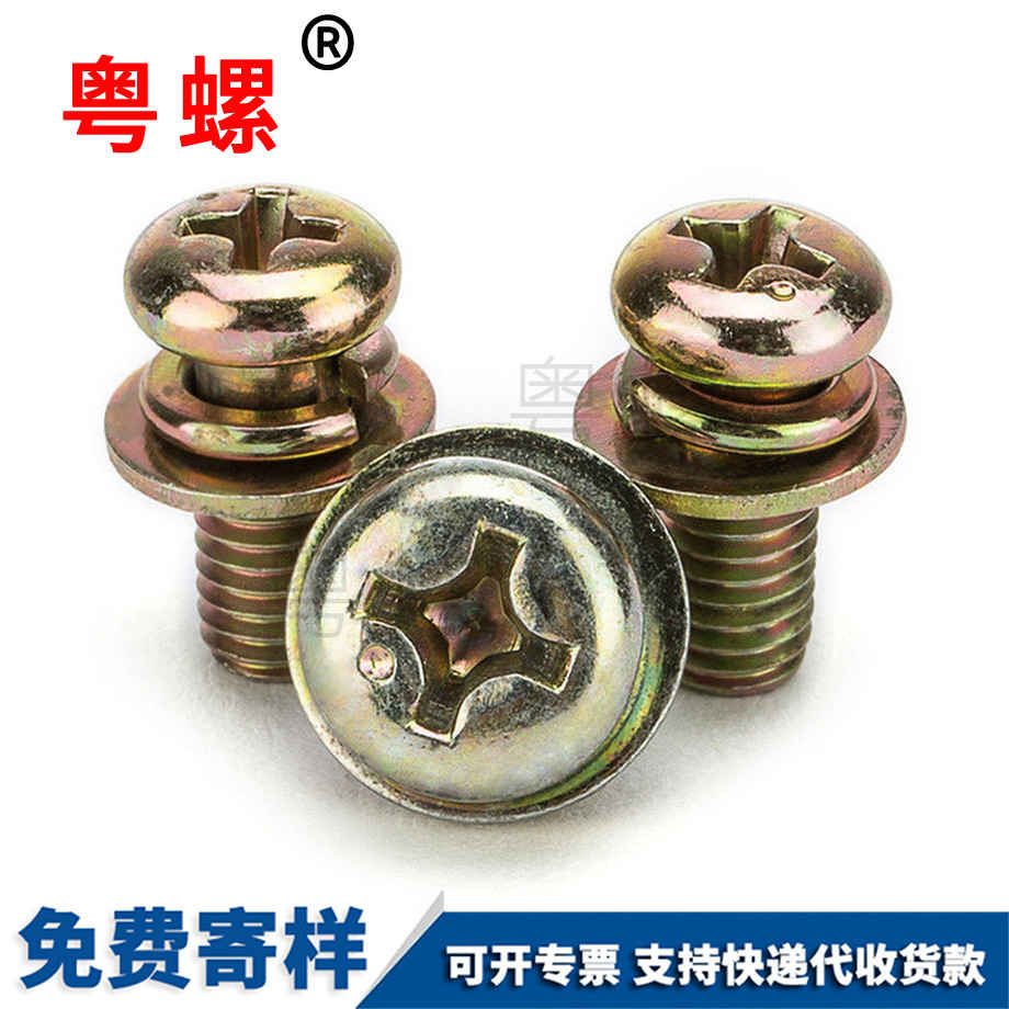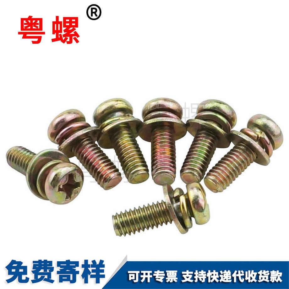 粵螺訂制鍍彩圓頭三組合螺絲 圓頭組合螺絲 盤頭三組合螺釘 M4 M6
