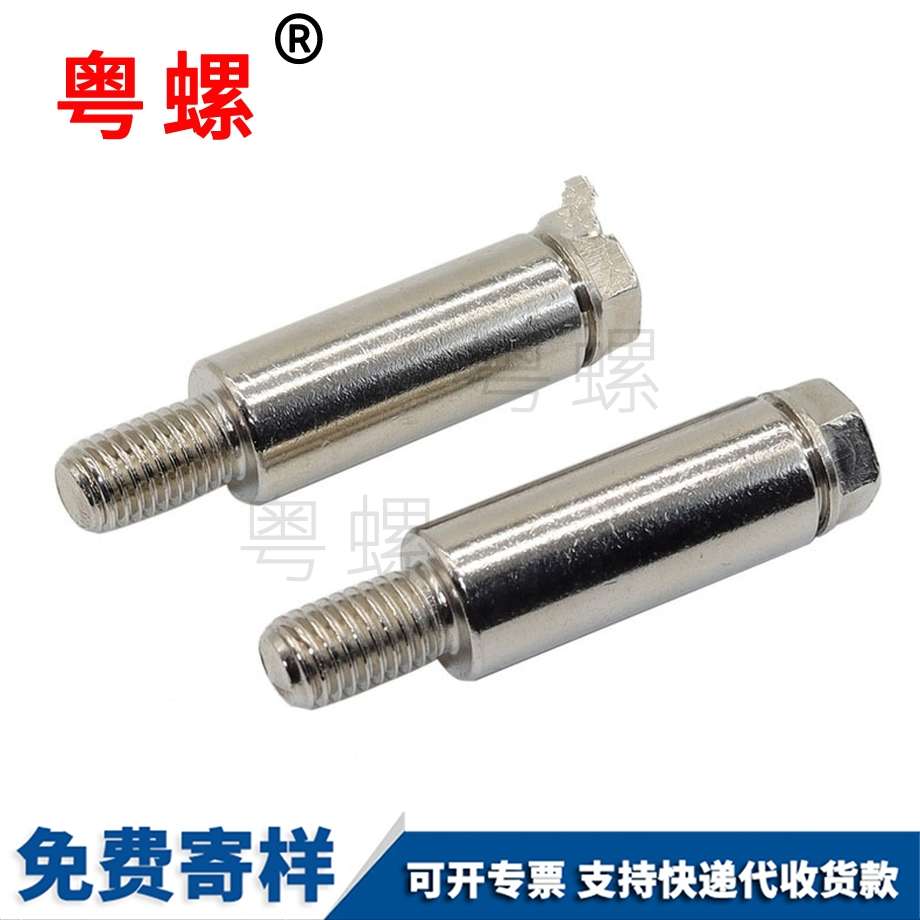 一種保險(xiǎn)螺釘,包括有螺桿,其特征在于:所述螺桿的兩端分別開(kāi)設(shè)有可供工具刀旋動(dòng)的槽口。與現(xiàn)有技術(shù)相比,廣東粵螺五金實(shí)業(yè)有限公司的優(yōu)點(diǎn)在于:在螺釘?shù)膬啥朔謩e開(kāi)設(shè)槽口,使得螺釘在使用時(shí),可以分別從兩端進(jìn)行旋緊或者旋松,而不受安裝位置和結(jié)構(gòu)的限制,在安裝空間較小或者工具刀無(wú)法伸入的情況下,方便操作者從另一端直接旋緊或旋松螺釘,提高安裝和拆卸效率,節(jié)省裝配時(shí)間,降低裝配難度。